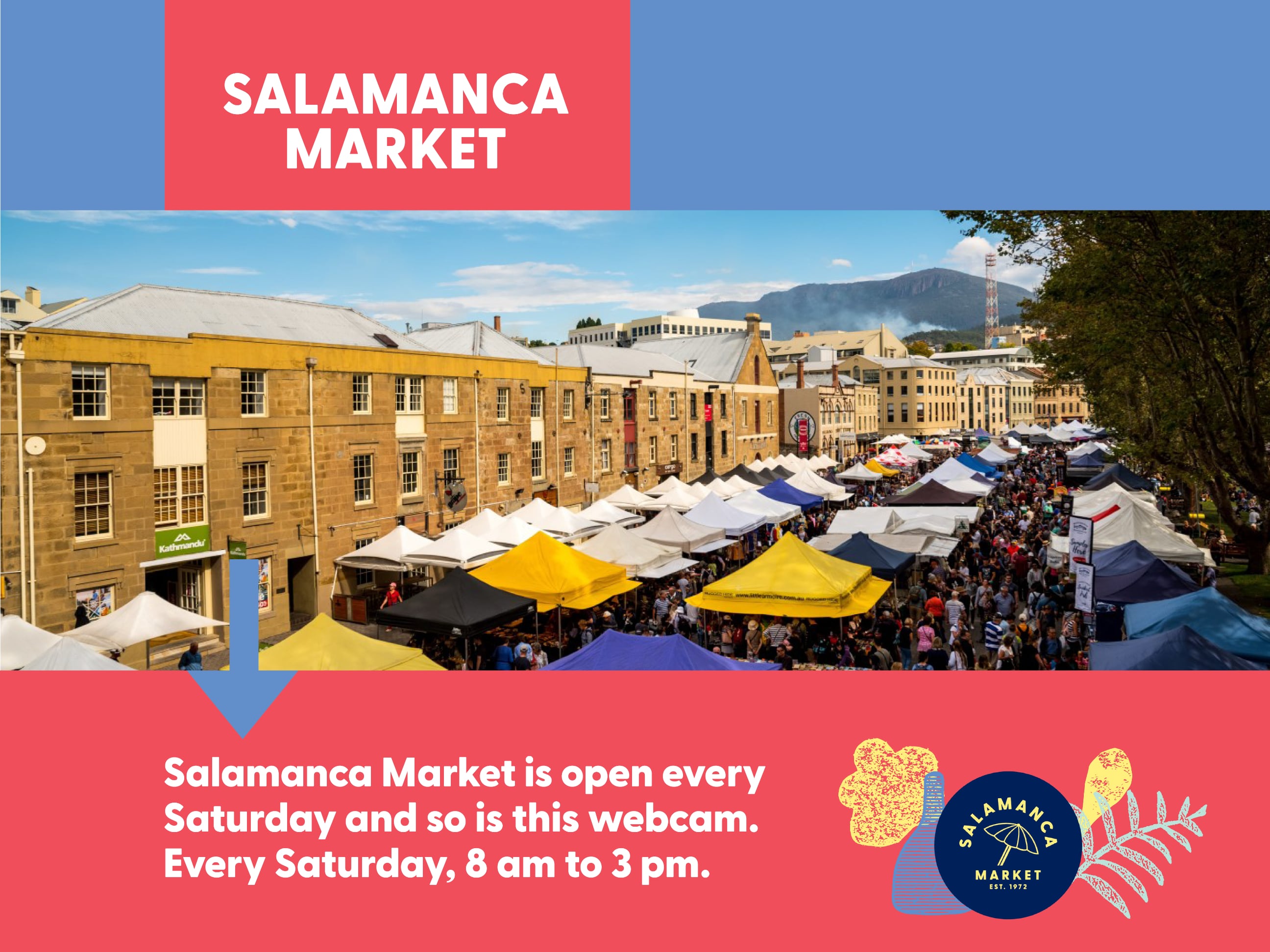 Whether you're checking the crowd before your visit, soaking in the atmosphere from afar, or just curious about what's happening today — experience the buzz of Salamanca Market wherever you are.